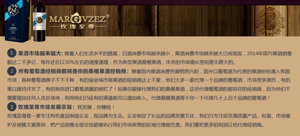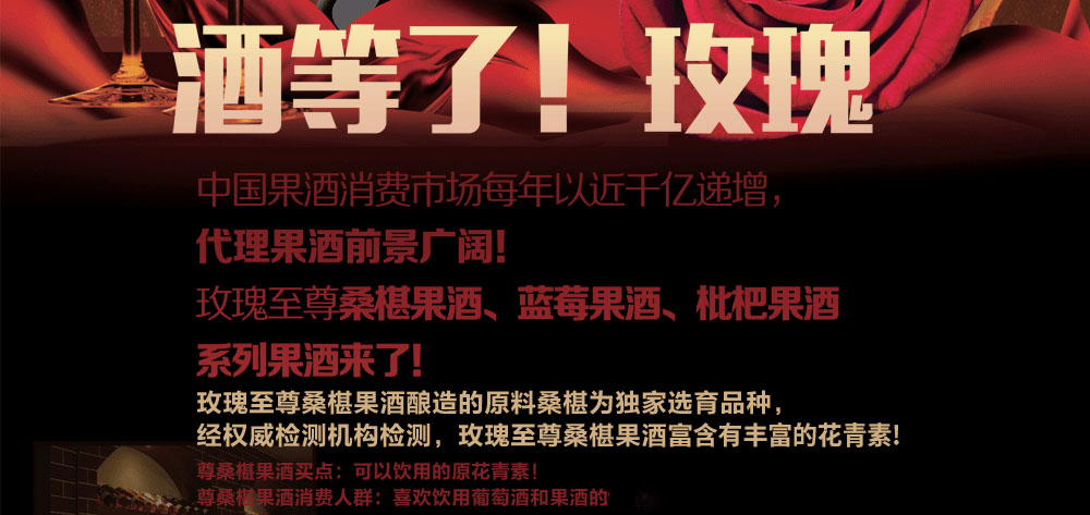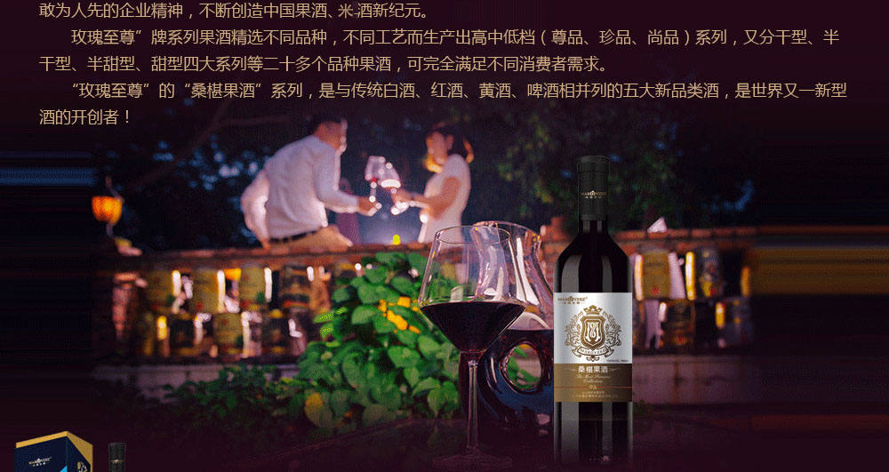 玫瑰至尊桑椹果酒、自己种植,原汁发酵,是高品质,果酒品牌。